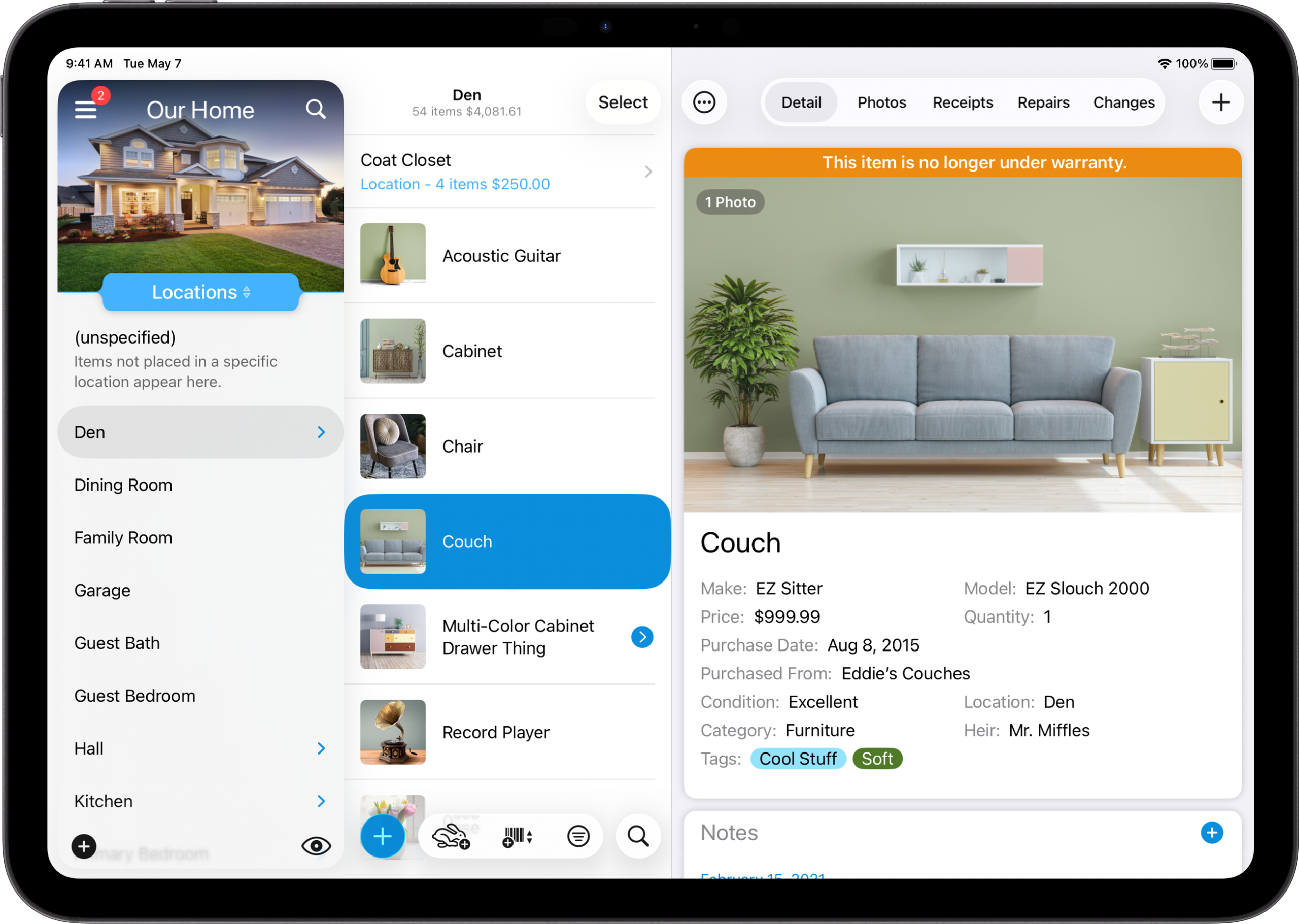 From purchase and warranty information to photos and receipts to descriptions and serial numbers, you can store all of the relevant information about your belongings.