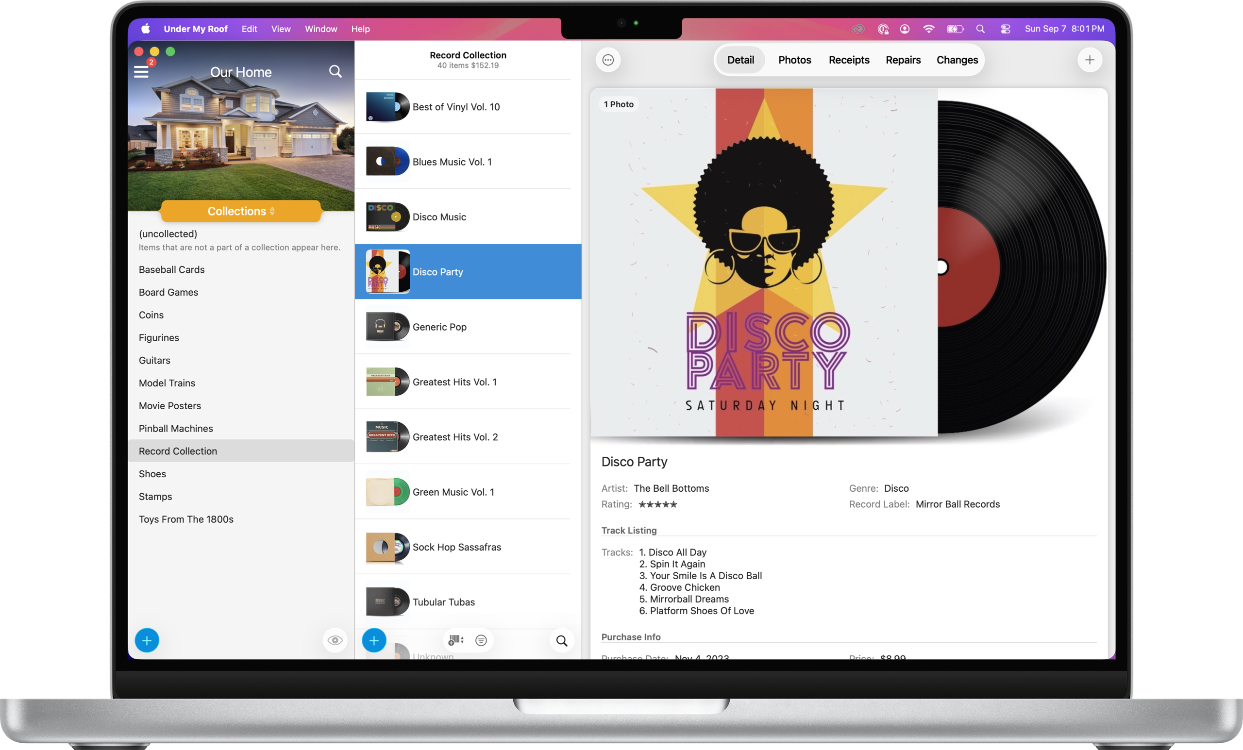 Under My Roof is a collector's dream with flexible valuation methods, photos, receipts, notes, and other important information.